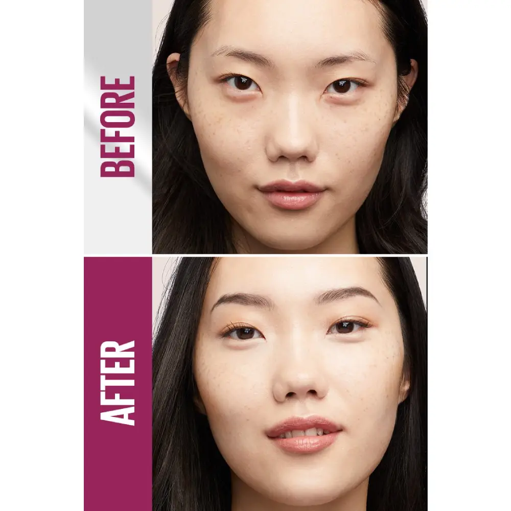 کانسیلر میبلین ایج ریوایند تا 12 ساعت رطوبت و پوشش يکنواخت ارائه مي دهد. اين ويژگي باعث مي شود در طول روز ظاهر آرايش حفظ شود، بدون آنکه داخل خطوط ريز پوستي جمع شود يا حالت ترک خوردگي ايجاد شود.